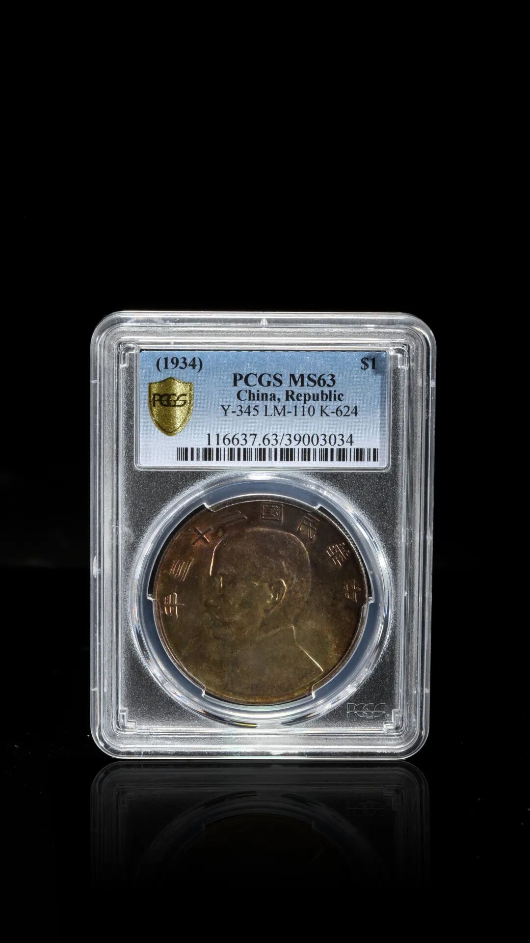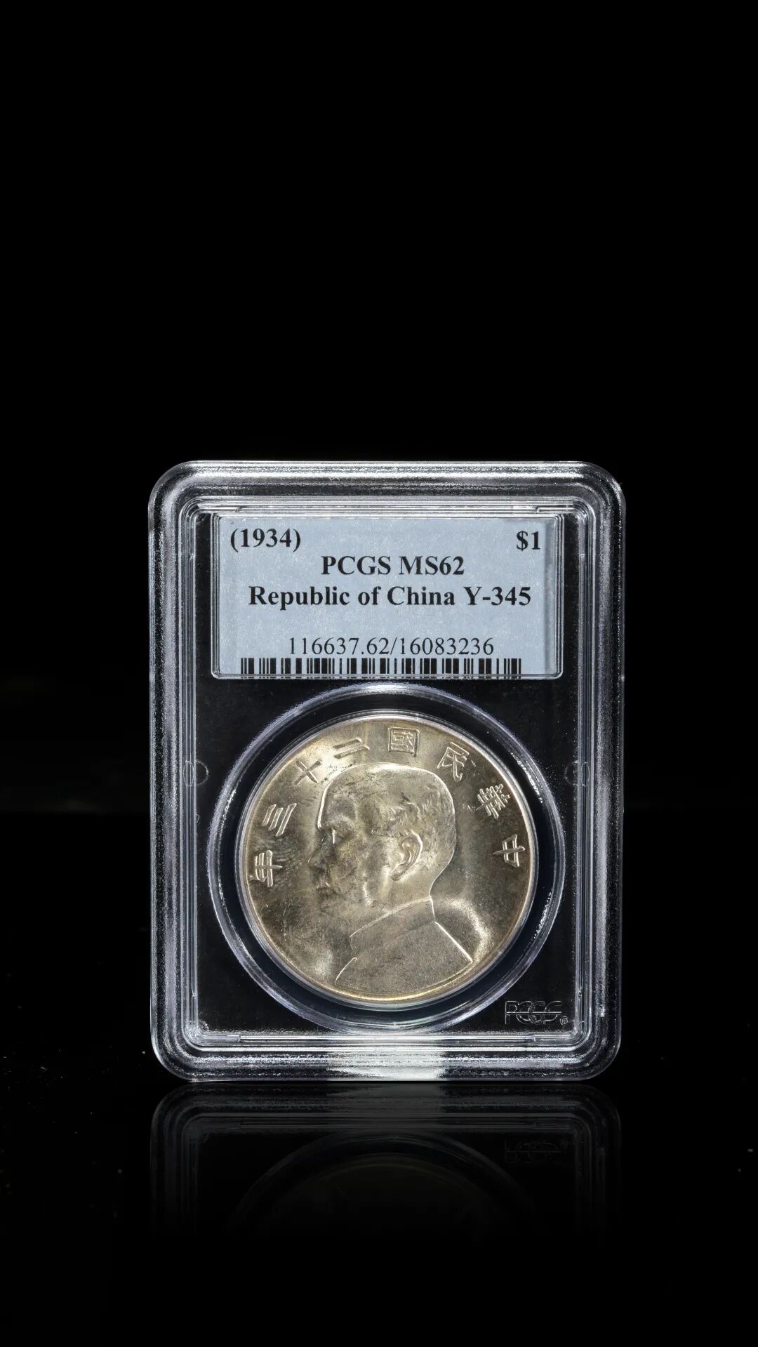 1934年民国二十三年孙中山像背帆船船洋银币一枚,PCGS MS62