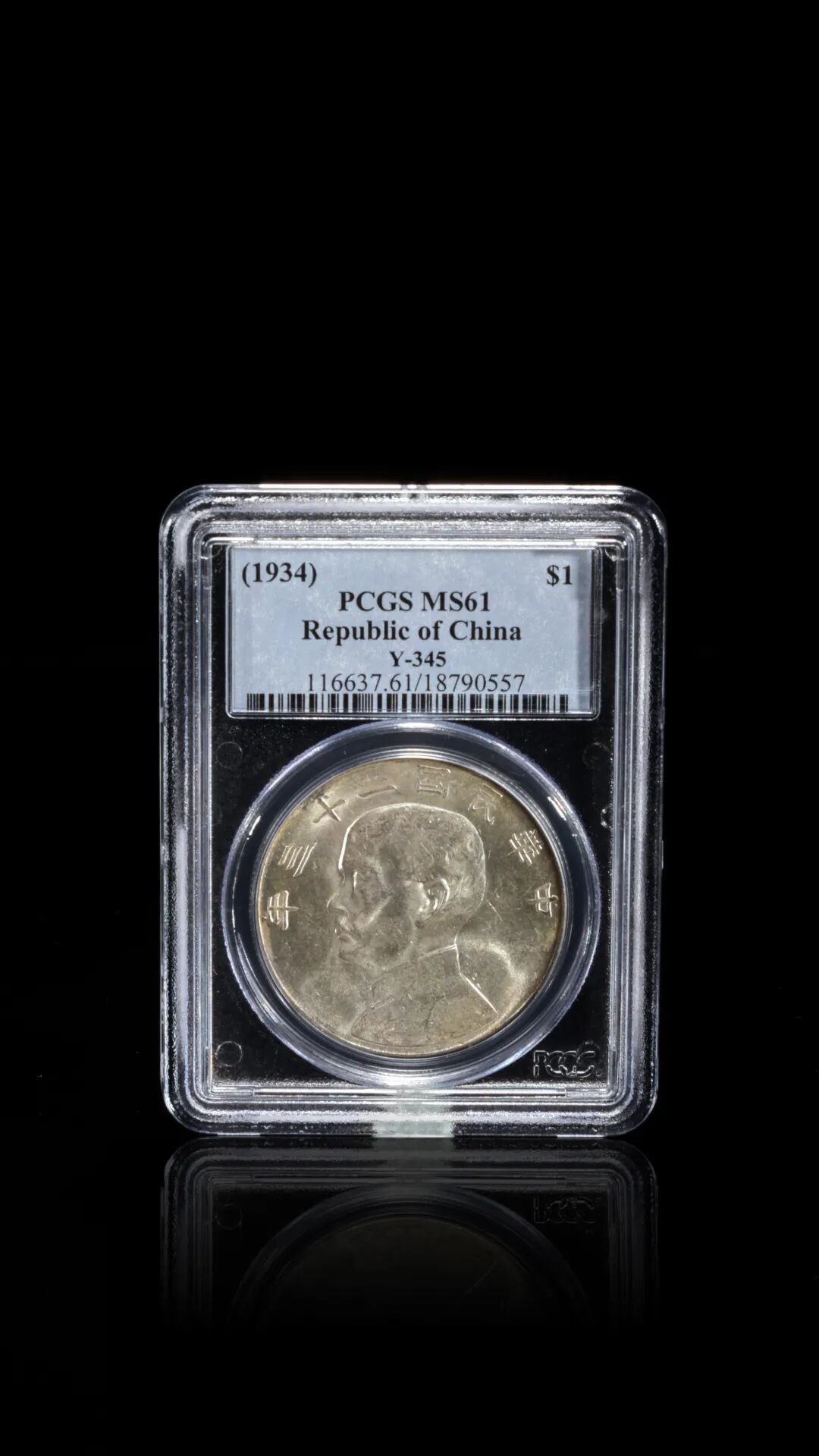 1934年民国二十三年孙中山像背帆船船洋银币一枚,PCGS MS61