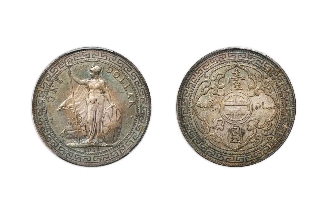 清代 1911年香港贸易银元“站人”壹圆银币PCGS AU53