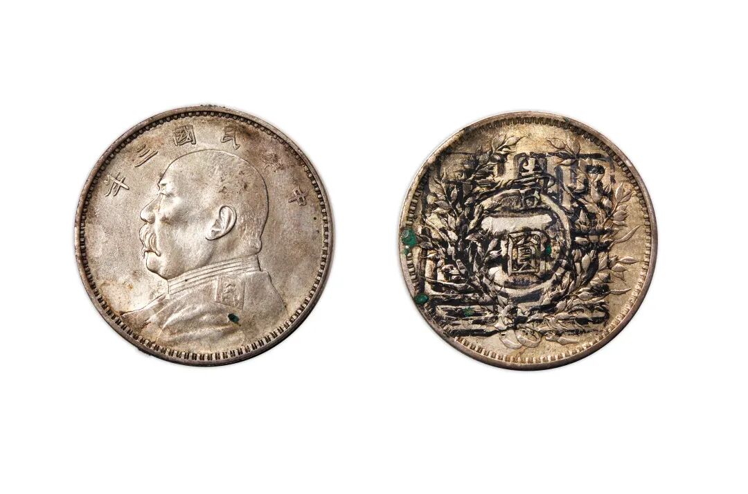 民国铸造 民国三年袁世凯像墨印“万象更新”中“正”壹圆银币