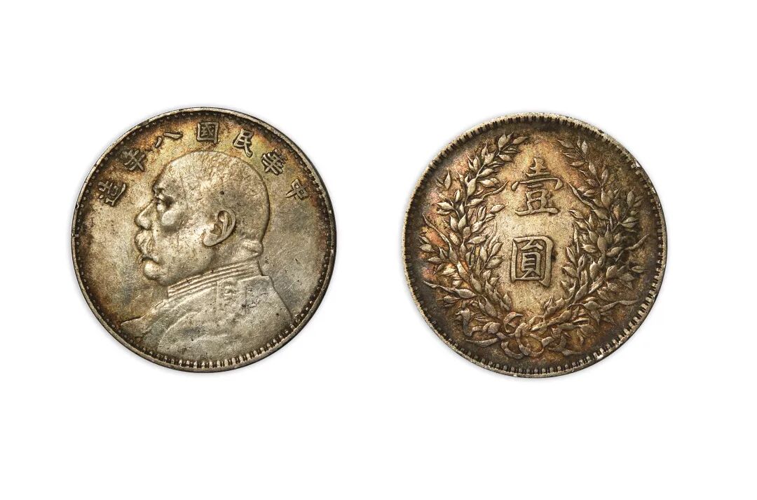 民国铸造 民国八年袁世凯像壹圆银币草头华 节上点版 PCGS AU53