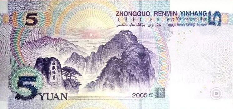我们知道,在5元纸币背面采用的是五岳之首——泰山的图案。图案包括了泰山日出、“五岳独尊”石刻、十八盘等著名景点。