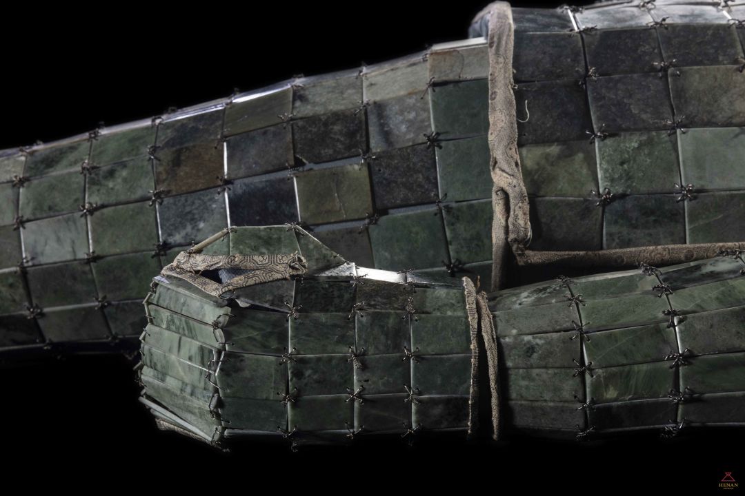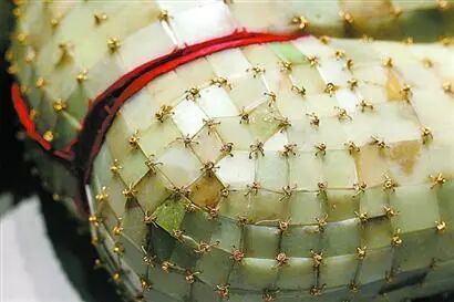 这件金缕玉衣是目前国内出土的年代最早、玉片数量最多、玉质最好、制作工艺最精的玉衣。出土的4000余片玉衣片,玉质温润,呈半透明状。
