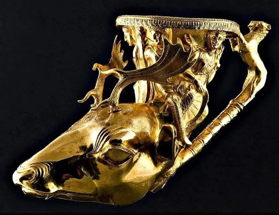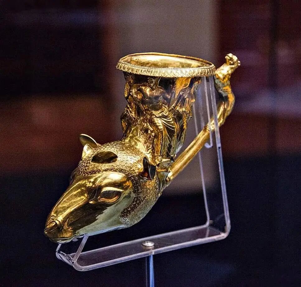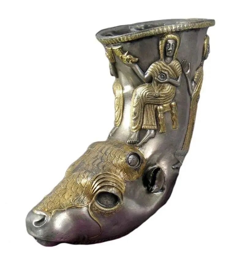 血流多了就会开始流泪,而酒却会越喝越约让人沉醉,从文明进步来看,酒祭早晚会代替血祭,慢慢血祭来通杯就与周边文明类似角状的饮酒具慢慢融合发生改变。(下面这些博物馆网站也叫rhyton)