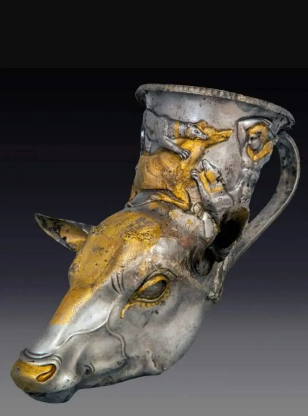 就此从小亚细亚到中原,形成了一条以祭祀为核心的传播路线,只不过经过数千里路程,一千多年的传播时间,赫梯文明、希腊文明、罗马文明、斯基泰文明、波斯文明、粟特文明、中华文明中,来通杯承载的不在是鲜血,而是葡萄美酒。