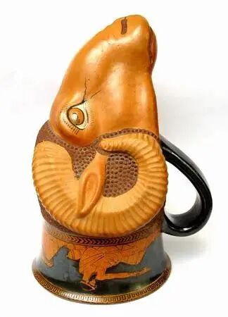 可以看出来海洋民族的纹饰非常有特点,有海螺、章鱼、海浪等等,陆地民族就是牛羊猪狗。开篇的老鼠比较少见,老鼠是阿波罗的神物,阿波罗同时被视为医学之神和疫病之神,老鼠代表疫病,蛇做为老鼠的天敌,代表消除疾病,大口饮下这杯酒,身体轻松病没有。