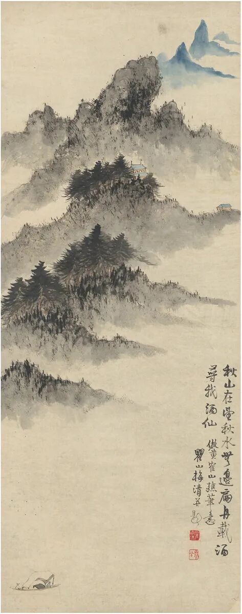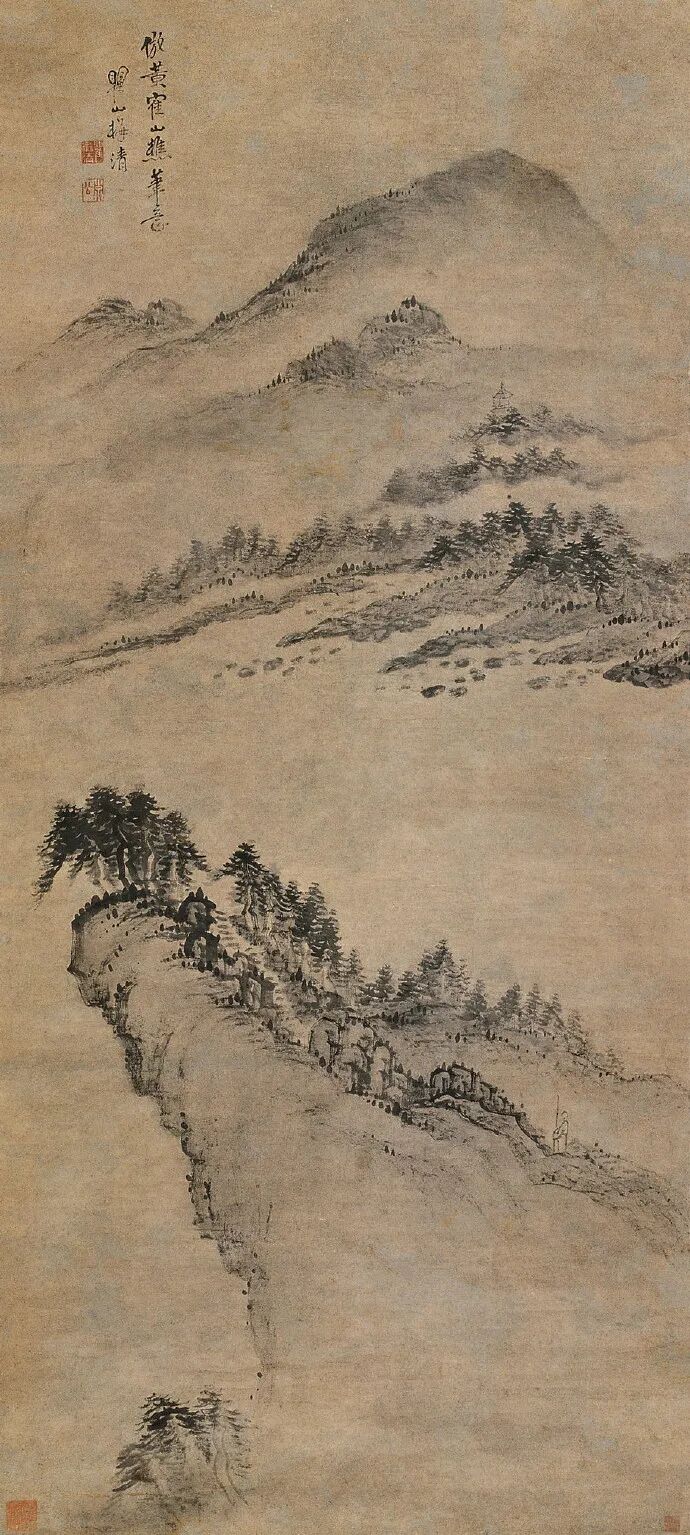 梅清擅长山水画,尤其是他笔下的黄山,云烟苍茫,笔法清秀,墨色苍浑,极富动感。