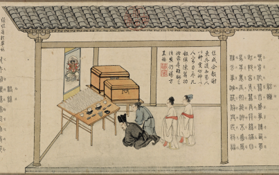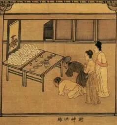 图七 宋代《蚕织图·谢神供丝》
