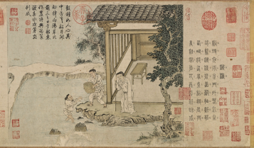 先看程棨《耕织图》。据《建炎以来系年要录》记载南宋高宗语:“朕见令禁中养蚕,庶使知稼穑艰难。祖宗时于延春阁两壁,画农家养蚕织绢甚详。”王潮生认为,此处记载的绘于延春阁的耕织图就是目前已知最早的系列化耕织图。但延春阁耕织图绘早已不存,后世知之者亦不多,真正为后人所熟知并产生了巨大影响的则是南宋楼璹《耕织图》,因此楼图才是我国历史上体系化耕织图的真正开创者。可惜的是,楼璹《耕织图》而今同样已不存,只有高宗吴皇后命宫廷画师据楼图“织”图创作而成的《蚕织图》尚存,今存黑龙江省博物馆。而程棨《耕织图》则完全根据楼璹《耕织图》创作而成,不论在画幅还是画目上均完全一致。由此,程棨《耕织图》也就成为我们一探楼璹《耕织图》最“直接”的证据。这正是弗利尔美术馆藏程棨《耕织图》的最大价值所在。