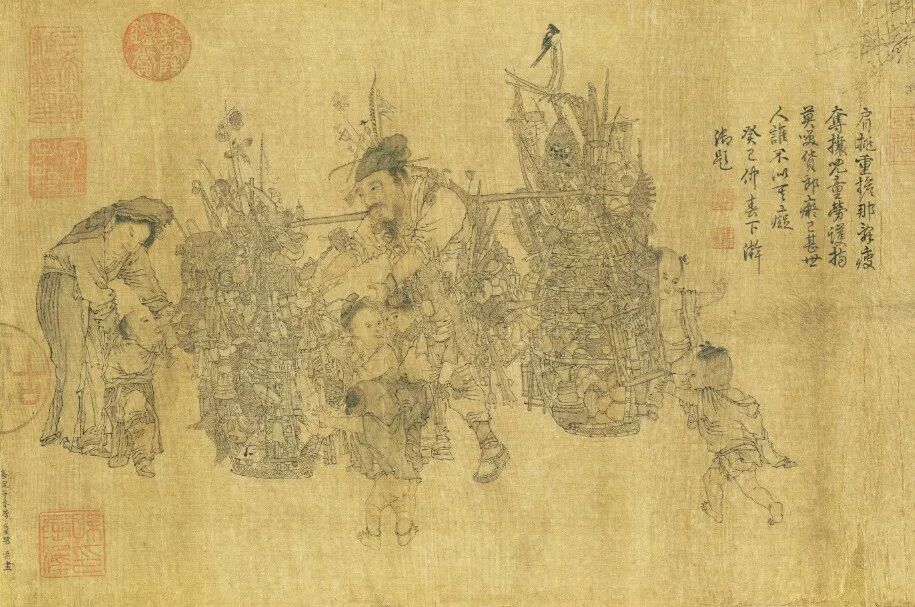李嵩(1166—1243),南宋画家,钱塘(今浙江杭州)人。《货郎图》是南宋画家李嵩创作的绢本设色画作。这幅画作纵25.5厘米,横70.4厘米,现藏于北京故宫博物院。