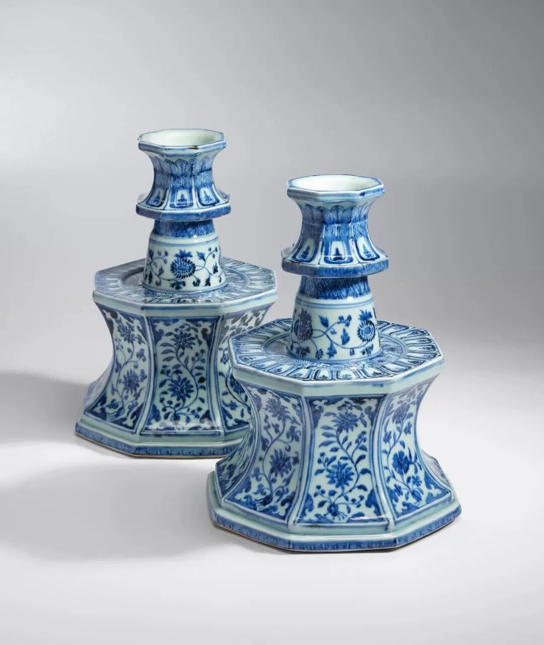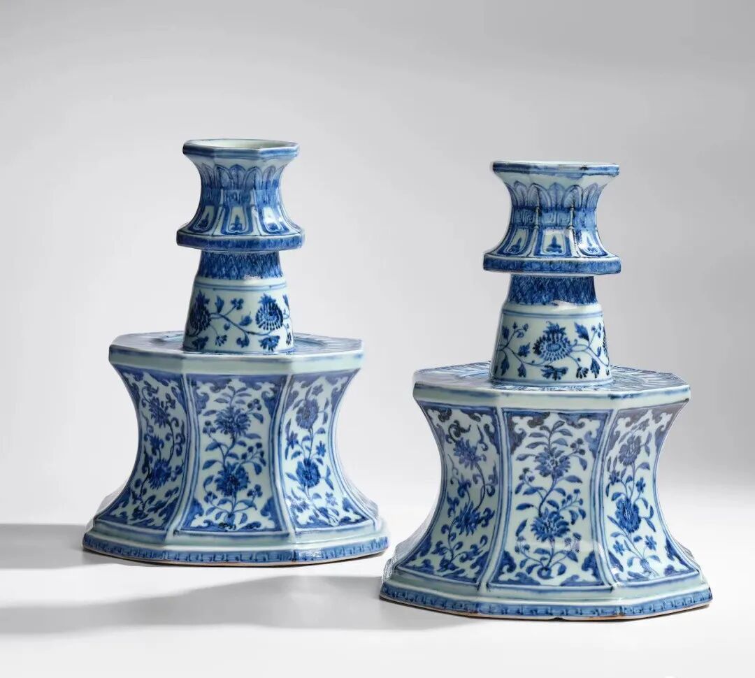 Lot0123明永乐 青花缠枝花卉八方烛台一对