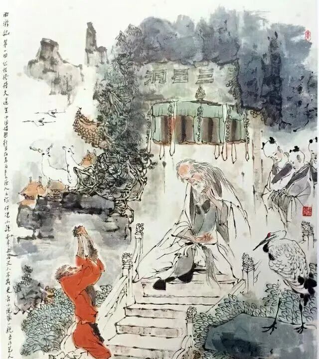 孙悟空初到师父门下时,对于他自己和周围的世界所知甚少,所以当师父问他姓什么时,他回答说:“我无性,人若骂我,我也不恼;若打我,我也不嗔,只是陪个礼儿就罢了。一生无性。”倒也天真得有些可爱。而他的师父却老练成熟,说起话来拐弯抹角,于是两人就有以下这样一段关于学道的对话: