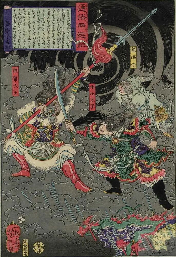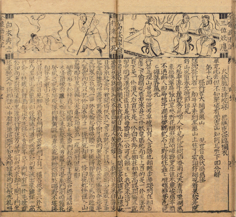 “‘孙行者神通广大,那唐憎吃他不成。’众怪道:‘大王,你没手段,等我们着几个去报大大王,教点起本洞大小兵来,摆开阵势,合力齐心,怕他走了那里去?’二魔道:‘你们不曾见他那条铁棒,有万夫不当之勇,我洞中不过四五百兵,怎禁得他那一棒?’”