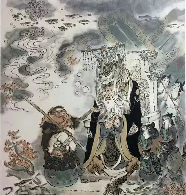 当然,灵巧变化主要还是为着偷盗与行骗的方便,懒龙因此主要是以神偷的手段而闻名的,而在这一点上,孙悟空也正是有过之而无不及的。《西游记》第五十一回,写到孙悟空和哪吒太子等一同对付独角兕大王,无奈魔王有一圈子,只往上一抛,便能将人连同兵器一同收进去。