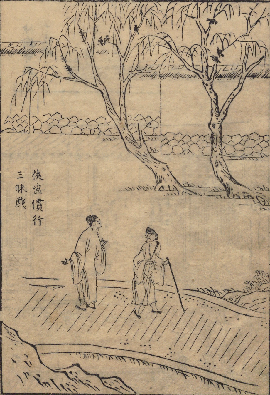 读过《西游记》的读者,都不难发现这些描写基本上适用于孙悟空的形象。孙悟空曾经使用过隐身术,后来更多的是变成苍蝇、蛾子,往来倏忽,难以觉察,也是极尽敏捷变化之妙。而追本寻源,岂不正与懒龙同类?孙悟空的七十二般变化,尽管加进了神化的色彩,实际上却也多是从市井神偷一类的以假乱真的手段演化而成的。这类描写在“三言”“二拍”中屡见不鲜,比如在《宋四公大闹禁魂张》中,赵正就曾化装成卖唱的女子,甚至骗过了他的师父宋四公。而神偷懒龙也曾在南京街上扮过卖卦的盲人,后来又扮作张指挥,骗走了他的红嘴绿鹦哥。小说中是这样描写的: