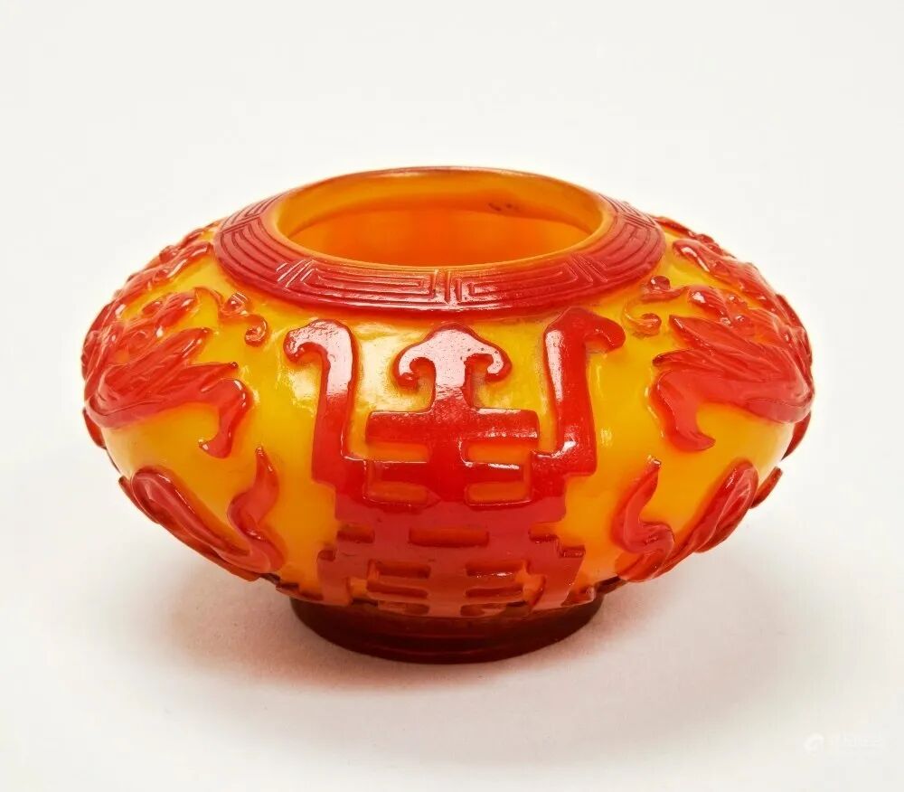 来源:巴斯私人收藏,现藏家于2010年左右购自香港Lot 222 清乾隆 "大清乾隆年制"珊瑚红釉龙纹瓶