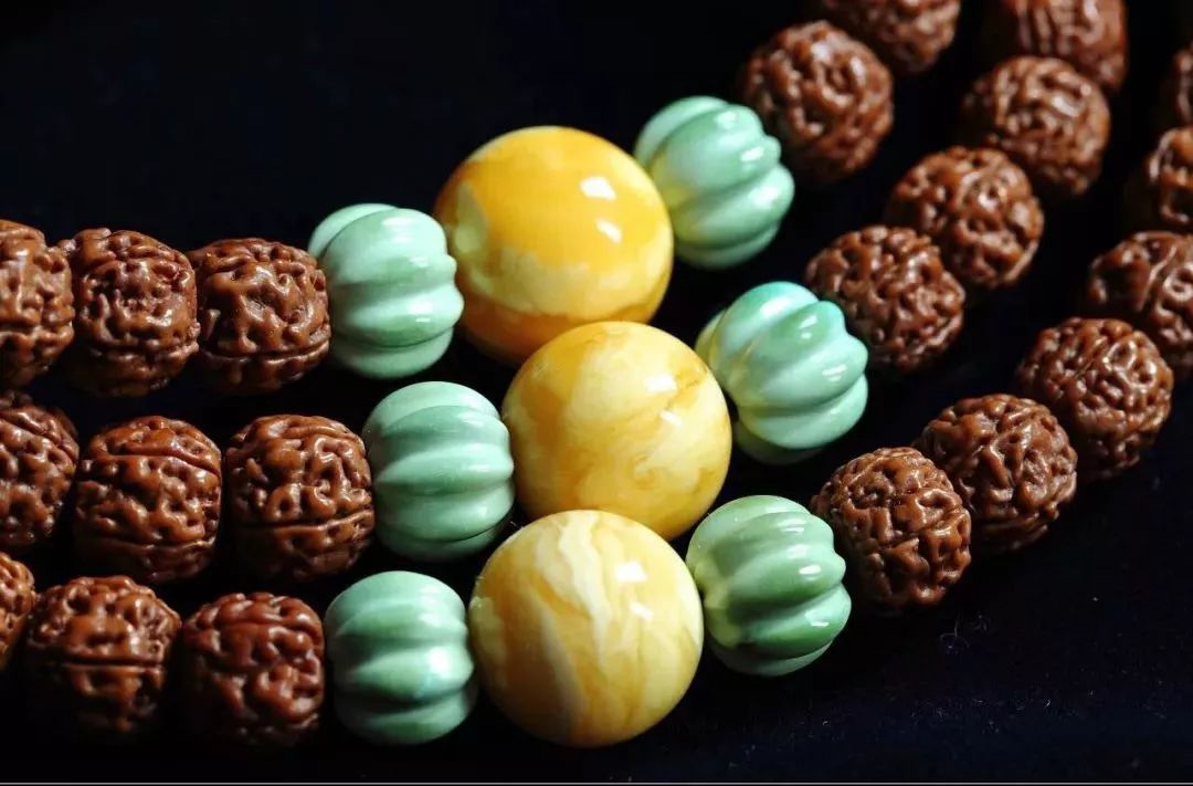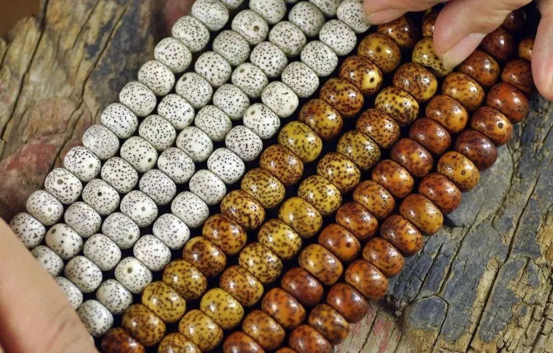 花皮:阴皮、色差形成的各种颜色都有的珠子,一般以绿、白、深黄为主 。开片:这个词源自于瓷器,就是表面形成裂纹,类似于哥窑瓷的表面 。做旧:指不法商贩把菩提子经过一些特殊手段做出老籽样子供,如朱砂供等,是藏传佛教的一种盘捻供奉方式后产生的与常态把玩佛珠形态不同的一些特殊类的把玩效果。