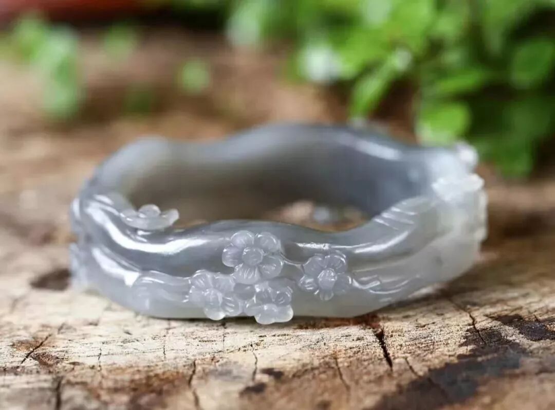 冰飘料:九口料的一种,颜色是透明色或者灰紫色得水晶肉带深红或者柿子红的飘花。好品质的水头极好,粉红透明,里面飘花,打不打光都很透!
