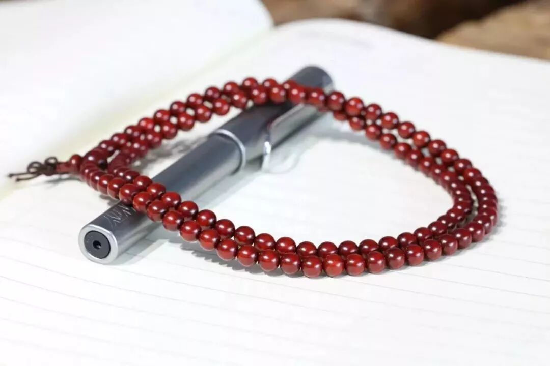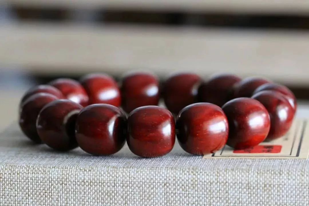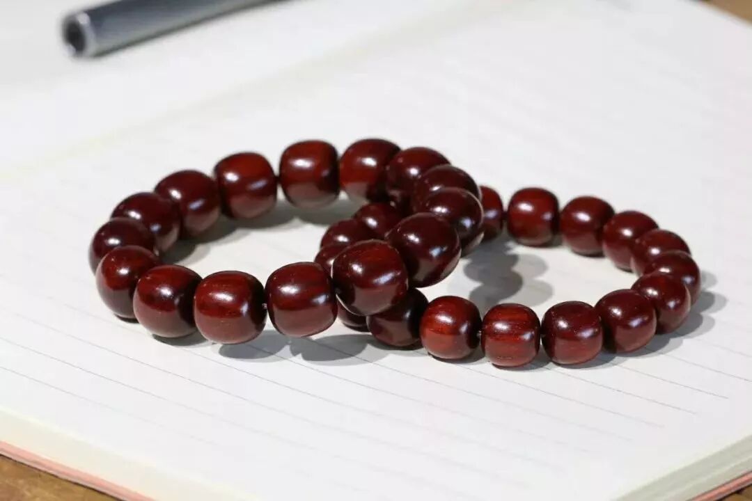 白皮:即紫檀树的外层树皮。(注:白皮在盘玩的过程中是不会变色的,我们挑选珠子的时候应当尽量避免。但工厂做珠子时肯定会把一些稍有瑕疵的珠子用来做三通,瑕疵部分盖在佛塔下的。)