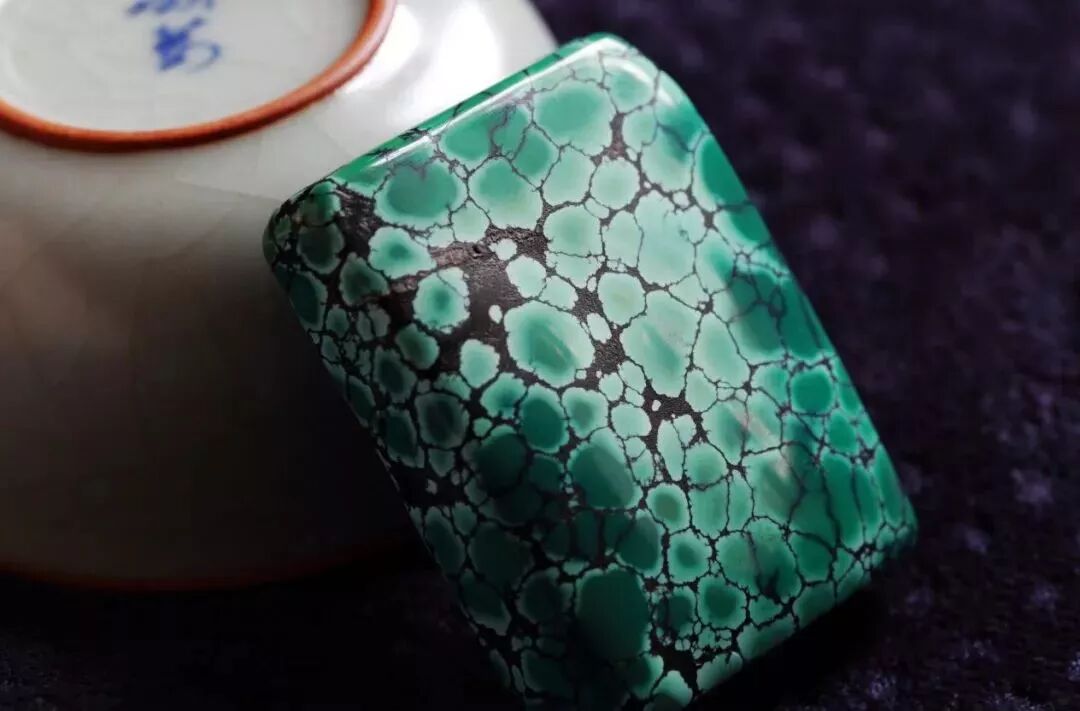 乌兰花:特指一种高瓷高蓝而且铁线纹路独特的高品质绿松石,铁线与绿松石底色互相交织、渗透,外观上犹如网状的小碎花,酷似瓷器中的哥窖纹。