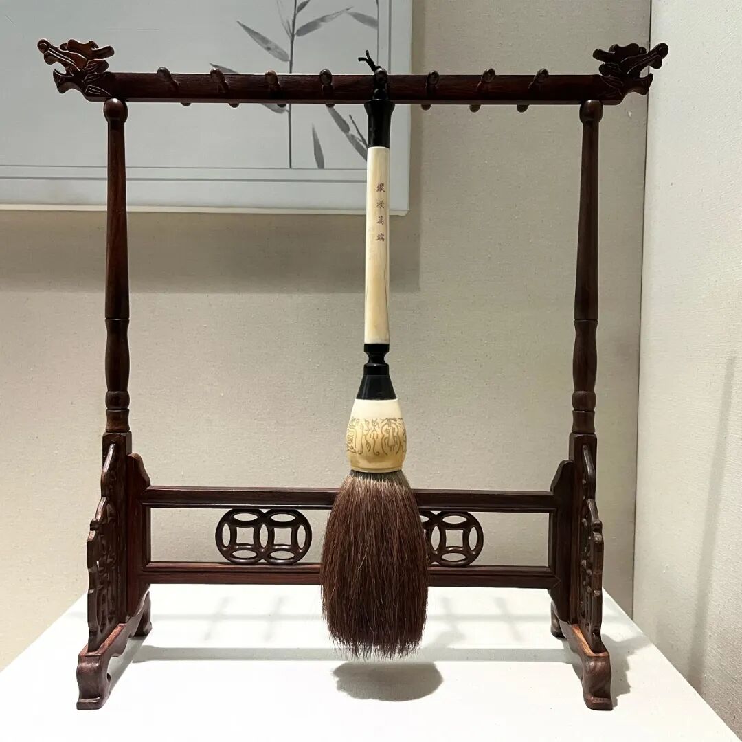 在闲情雅致展厅,除了同样也有一件象牙臂搁外,还展出了象牙毛笔三支。是不是感觉已经装备齐全,跃跃欲试,想一同挥笔创作,领略古人文房意趣了呢?