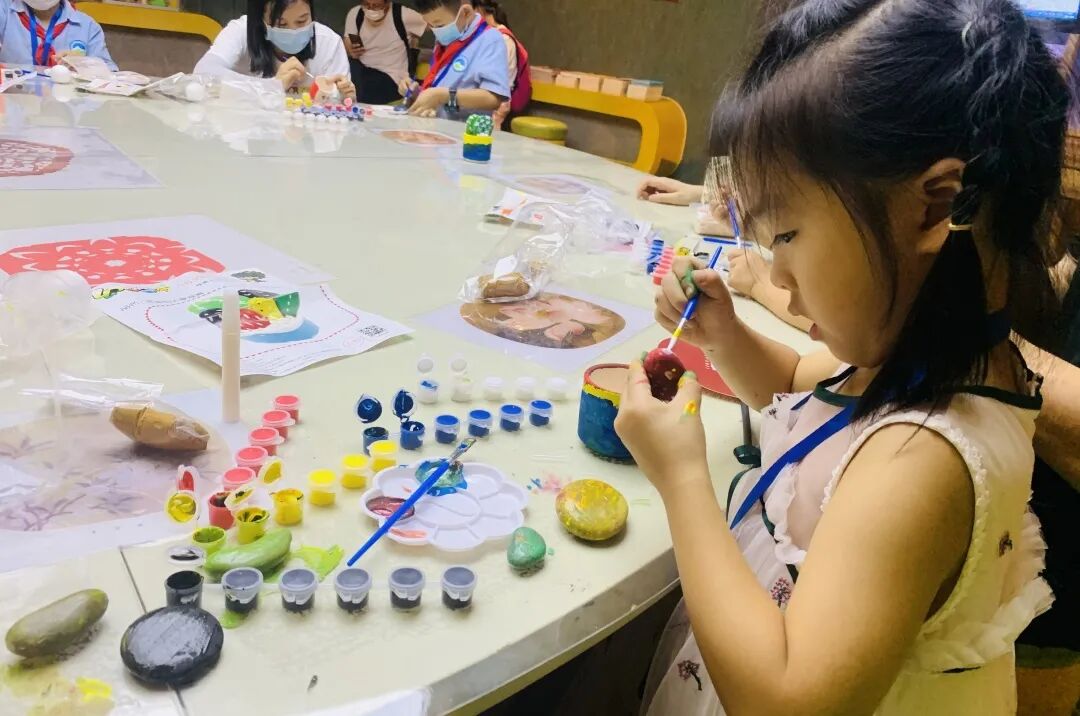石头之美源自天然,千姿百态又各具魅力,深受古今文人雅士的喜爱,除了山水园林中的点缀,也逐渐成为文人的案头清玩。活动中,小朋友们尽情发挥奇思妙想,将石头涂上斑斓的色彩,并任意组合成涂鸦小盆栽,为家中的书桌、窗台增添一丝艺术气息。
