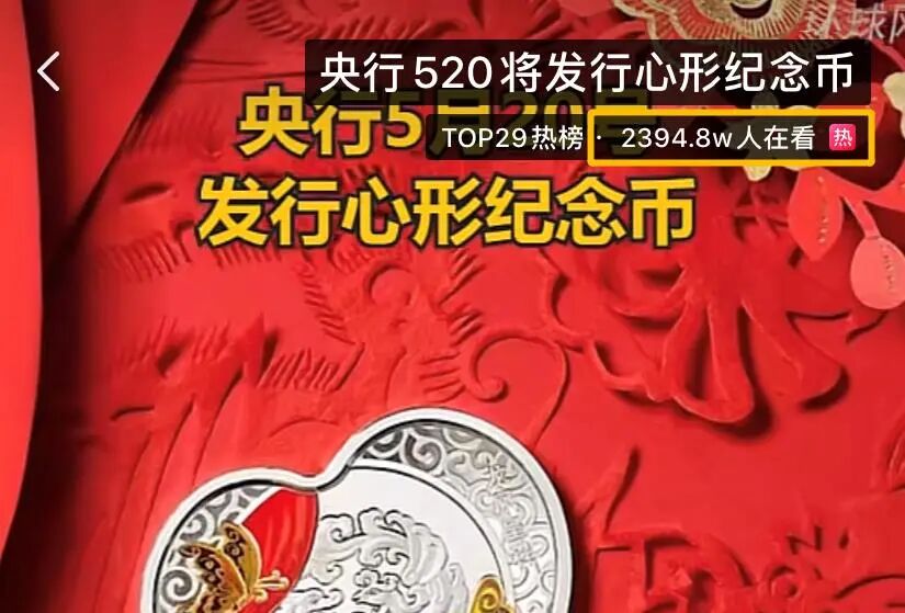 到底是什么神仙纪念币,竟然吸引了两千多万人的围观?原来2022吉祥文化心形纪念币,是来自官网的“520发糖”,是“心动”啊!