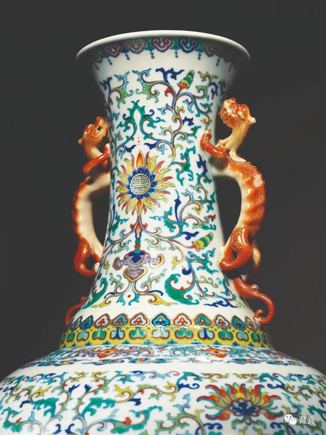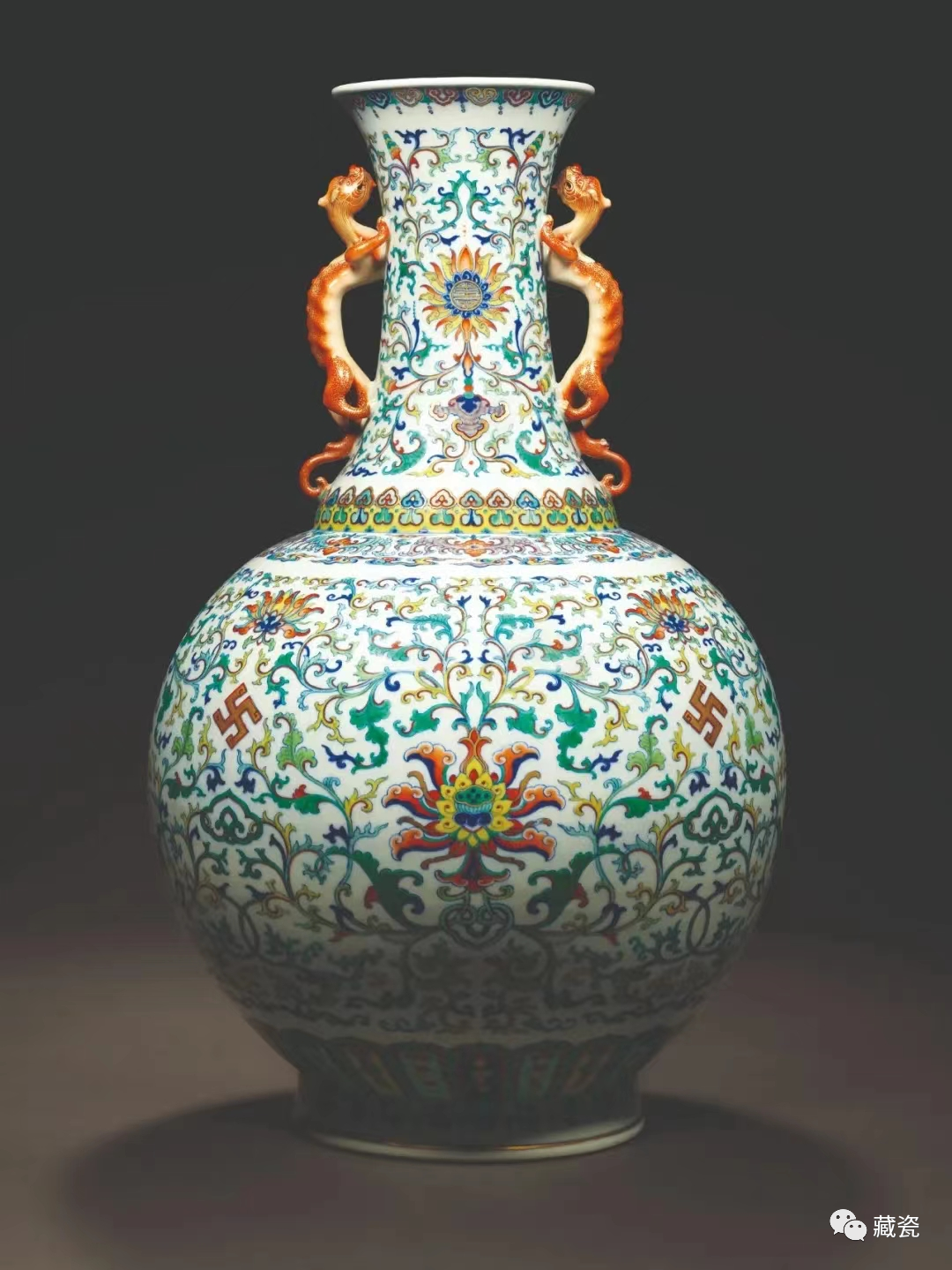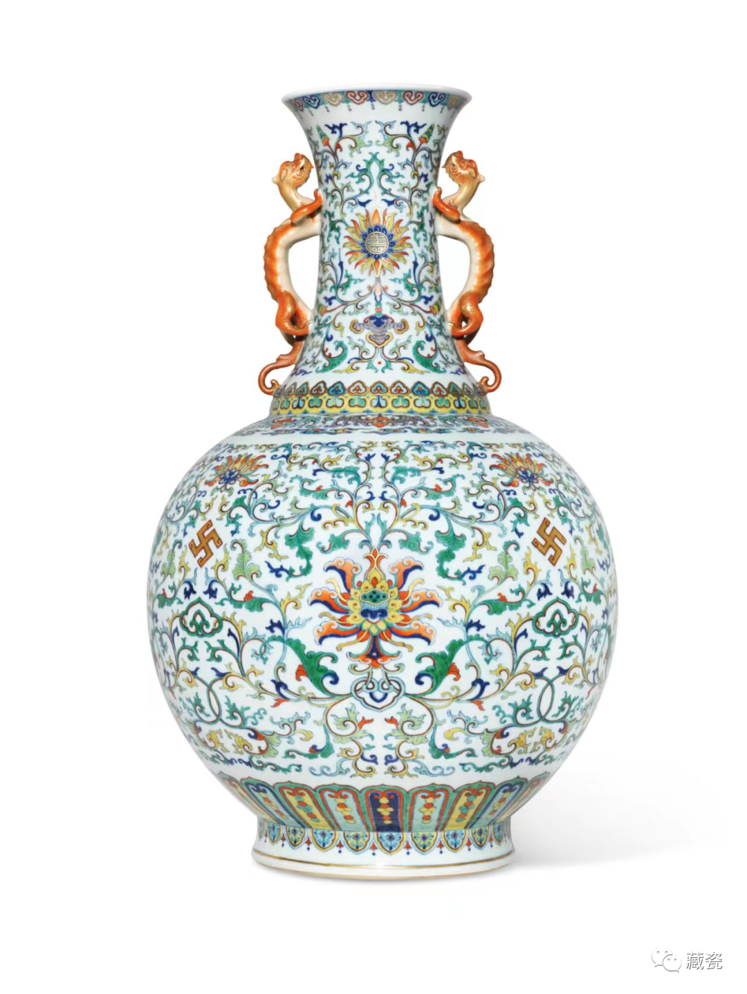 Lot2863清乾隆斗彩万福庆寿双螭龙耳大瓶