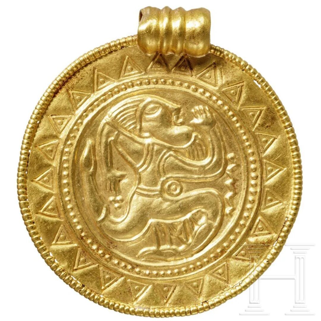img class="rich_pages wxw-img js_insertlocalimg" data-ratio="1" data-s="300,640" data-src="https://mmbiz.qpic.cn/mmbiz_jpg/r3WC9kssK1aX51vpLNX4Ny3VAYy6kDKyTI762PeJQwOLoT2BVSHEbmpTR2MIo7HhqyX7t4A7jMia7PgeSfhFLhA/640?wx_fmt=jpeg" data-type="jpeg" data-w="1100" style="">Lot 15 6世纪末至7世纪初 萨珊王朝晚期 银盘尺寸:Dia 38.3 cm,H 7 cm,重 1935 gLot 88 公元5世纪末至6世纪初 北日耳曼 黄金垂饰