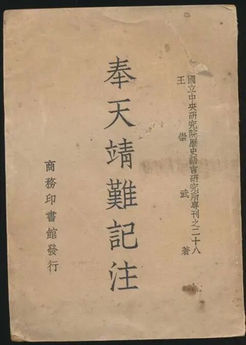 [1]王崇武.奉天靖难记注[M].台北:"中央研究 院"历史语言研究所专刊之二八,1948.