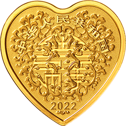2022年心形币的主题是“龙凤呈祥”,用来形容夫妻间比翼双飞、恩爱相随、相濡以沫、怡合百年的忠贞爱情。