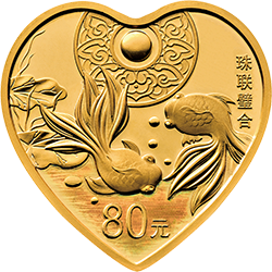 金币上龙凤起舞,围绕成代表爱情的心形,又像一枚音符,演奏出对美好爱情的向往。