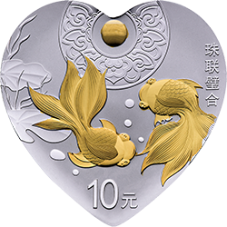 另外,2019年心形纪念币,金币和银币首次采用不同图案。金币小巧玲珑,龙凤绕璧而舞;银币上宝珠莲叶玉璧荷花完美结合成为一体。