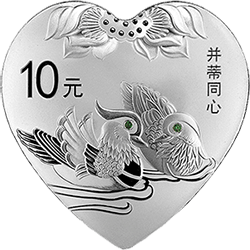 从2015年开始,寓意着爱情美满主题的并蒂同心纪念币陆续发行,用心形的表现形式,重点强调了并蒂同心,爱情美满等寓意。