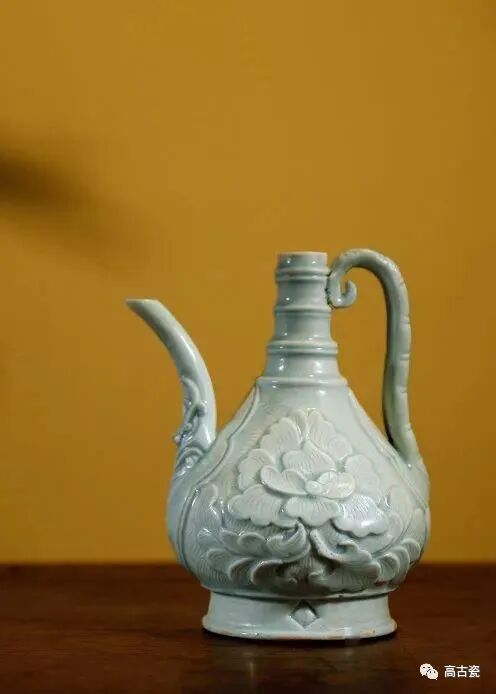 TOP10 北宋 影青釉竹节柄深剔牡丹纹桃式壶