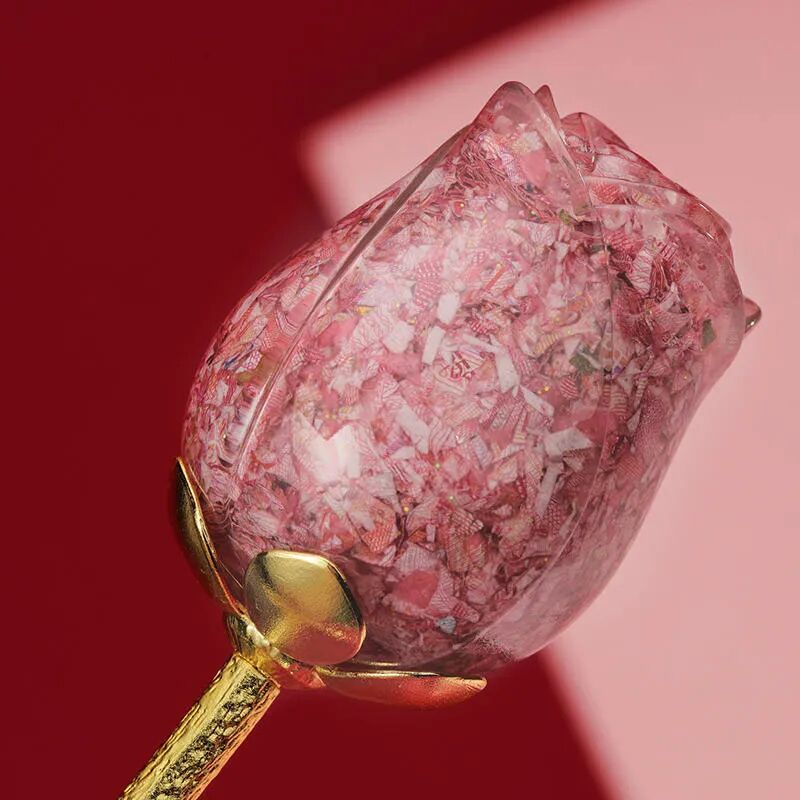 玫瑰花代表永恒的爱,这枝碎钞玫瑰则是爱意永不凋谢的凭证;它还是一枝永垂不朽的“有钱花”,更是财富源源不断的象征!