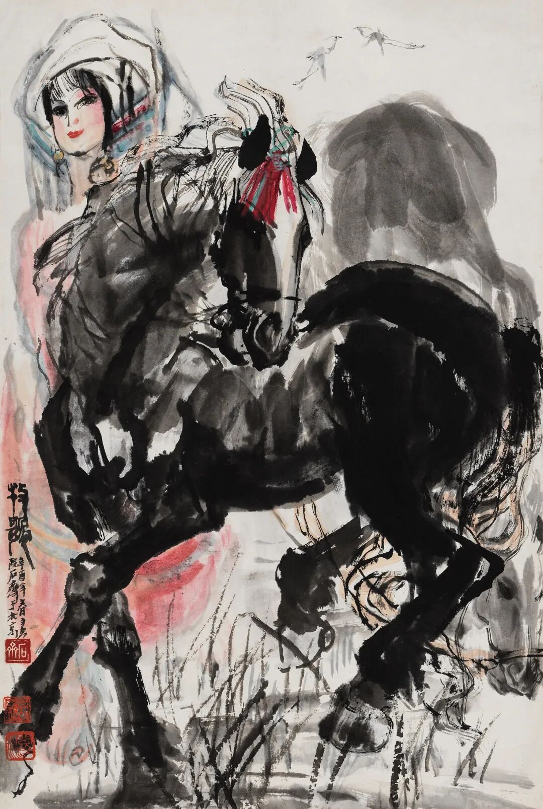 刘勃舒、尹瘦石合作 铁骨霸谛看绝尘