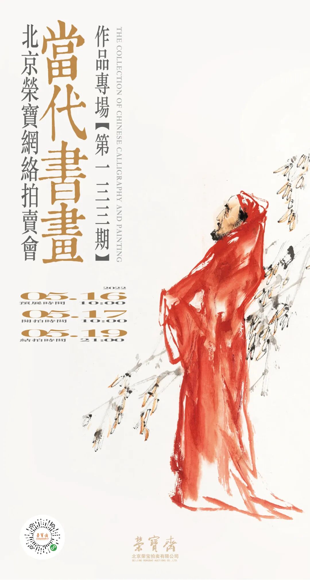 北京荣宝·当代书画作品专场网络拍卖会(第一三三期)将于5月16日10:00—5月17日10:00开启线上预展,并于5月17日10:00开拍,5月19日21:00结拍。