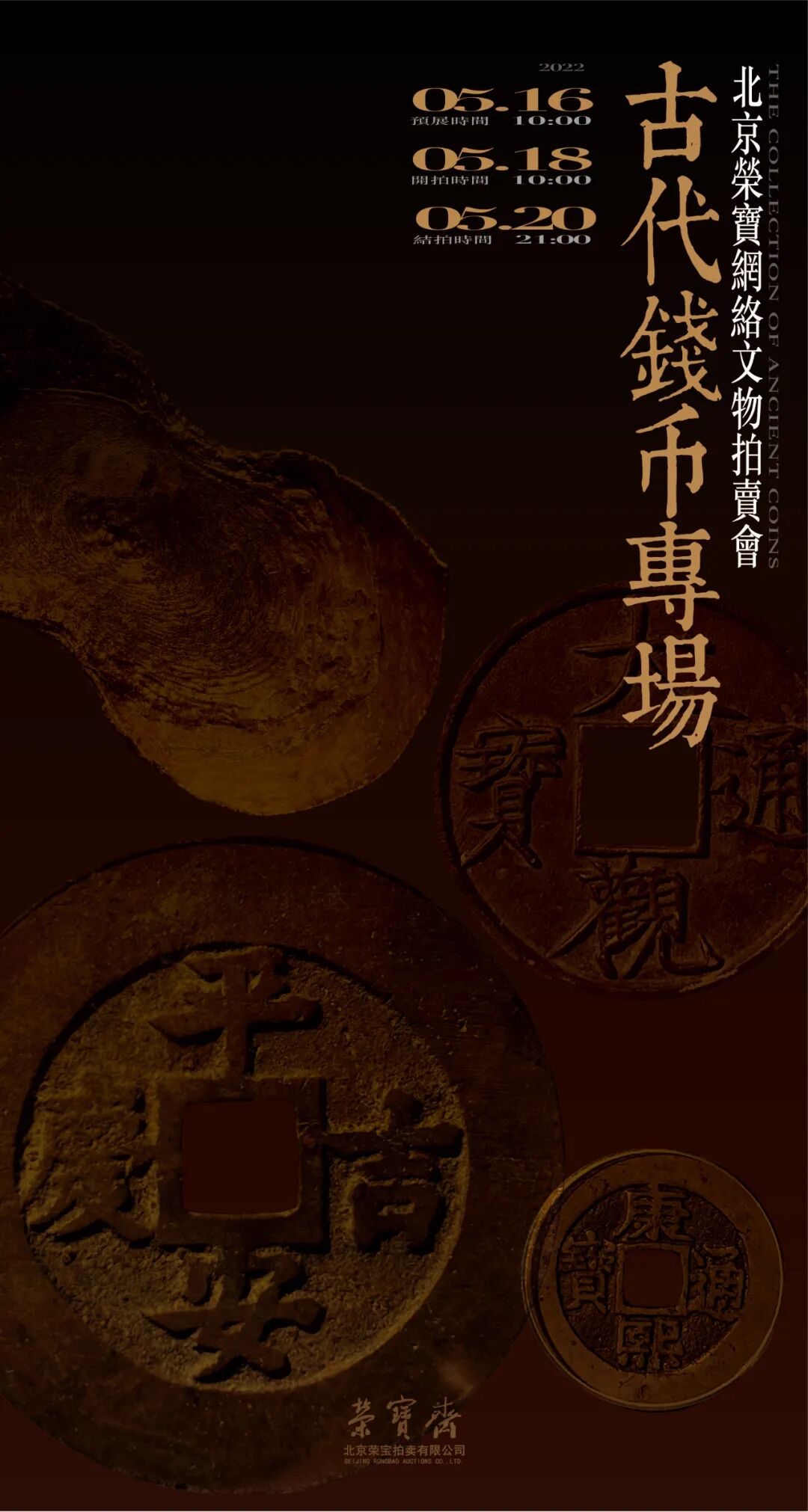 北京荣宝·古代钱币专场网络文物拍卖会将于5月16日10:00—5月18日10:00开启线上预展,并于5月18日10:00开拍,5月20日21:00结拍。