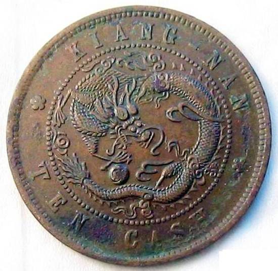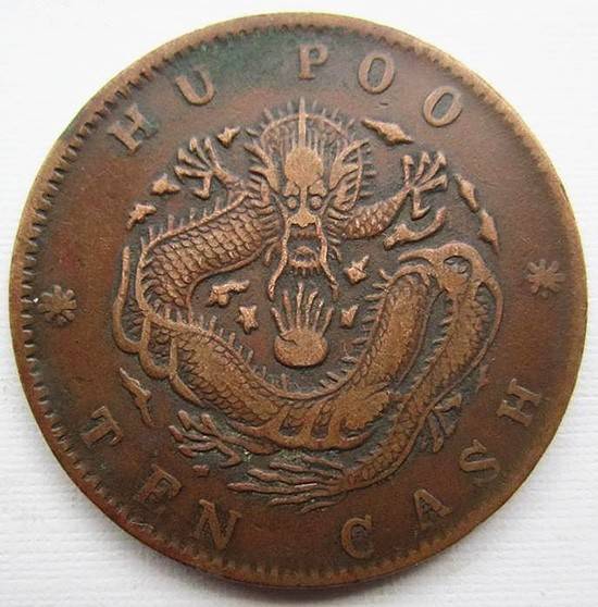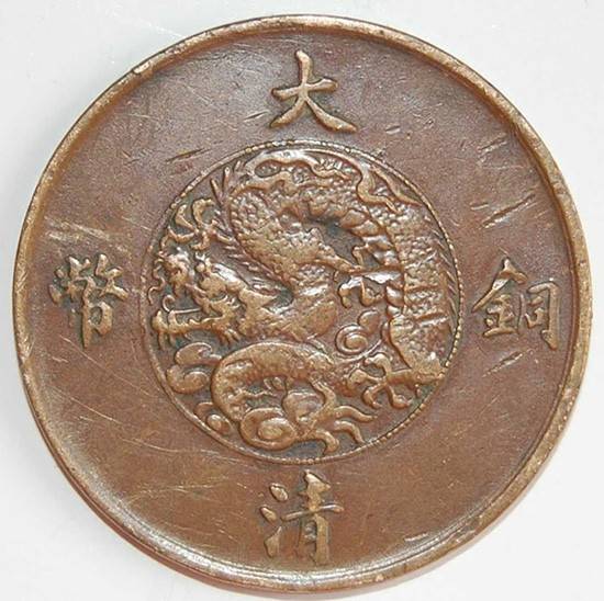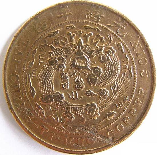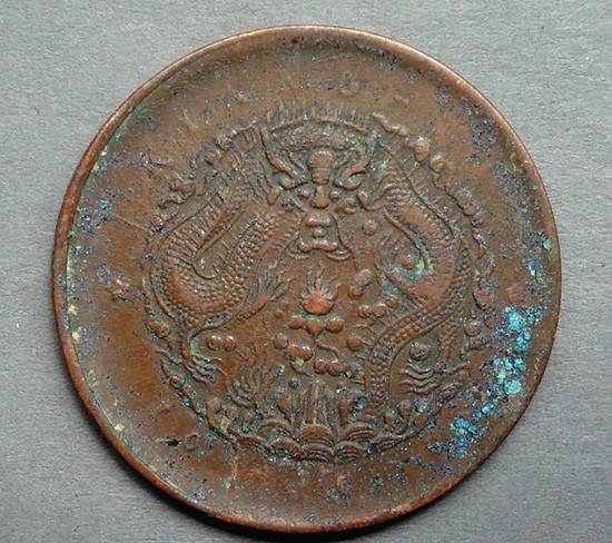 清代铜圆常见龙图之一,又称“己”字龙。常见于户部、广东、湖北、江南、江苏、清江、安徽、江西、四川、北洋、奉天、浙江、山东、河南、云南铜圆局。