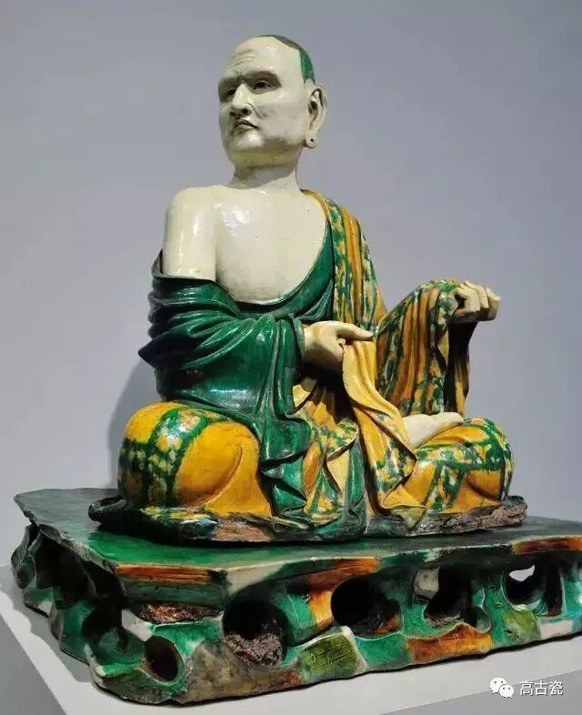 这是大都会博物馆收藏的第二尊易县三彩罗汉,较之第一尊,此尊罗汉年龄更大,内心世界的刻画也更显复杂。
