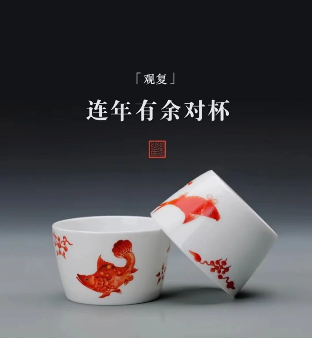 有感于此,观复博物馆以馆藏清康熙白釉矾红鱼藻纹笔筒为凭,做【连年有余】对杯,几千年文化血脉,我们喝喝茶就可算传承▼