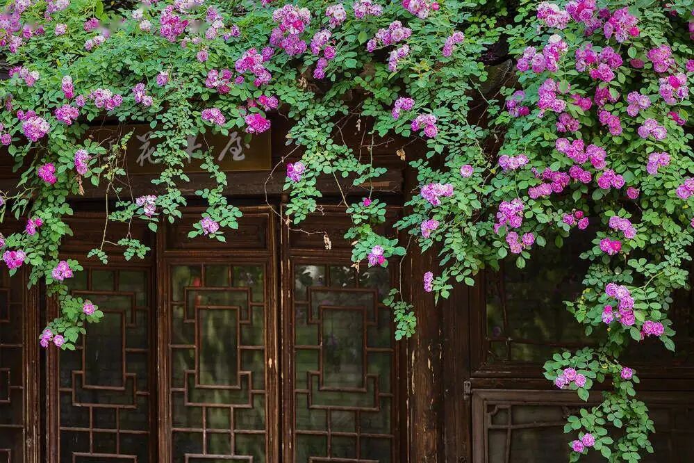 水晶帘动微风起,满架蔷薇一院香。
