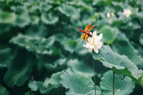 赏析:初夏静美,万物萌动而生气蓬勃。这首诗很朴实,却句句是画,展现出清新自然的美好画面,所以才如此被广为传颂,尤其是“小荷才露尖尖角,早有蜻蜓立上头”两句。唐丨李白