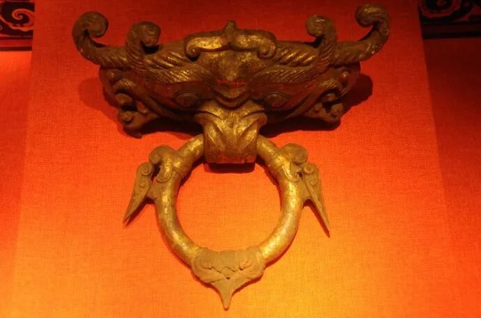 他们在玉器制作上既保留了中原和楚地传统风格,又吸收了岭南当地文化并有自身的创造。这件器物由一块玉璧和双目圆睁的兽首组成,可上下转动,是中原常见的铺首形状,是门上的装饰物,但不同的是它在造型上打破了中原器物的对称格局,表现出标新立异的风格,给人一种清新的感觉。
