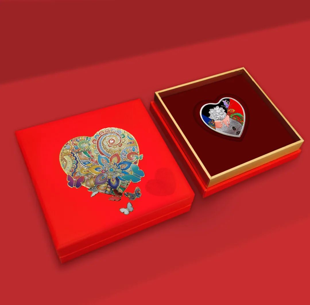 这套心形章由南京造币铸造出品。南京造币有限公司是中国四大国家造币之一,我们日常使用的硬币就出自这里。