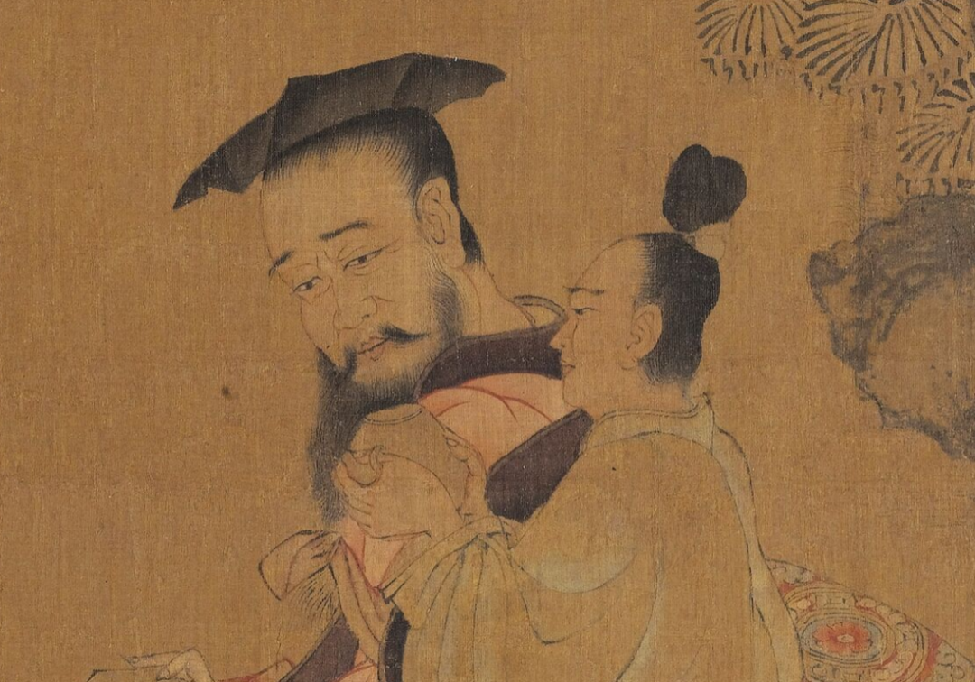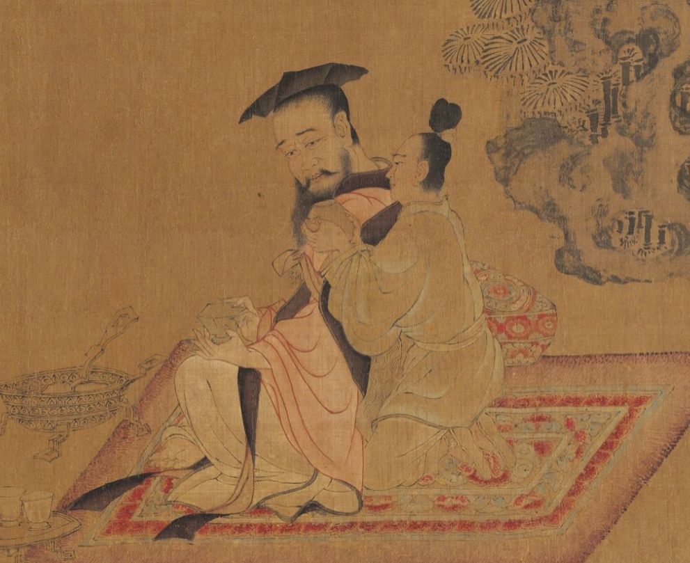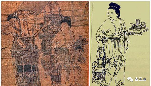 一个正在旁观斗茶的市井妇女,穿抹胸,露出乳沟,外罩一件褙子,也没有裹脚,性感、开放。