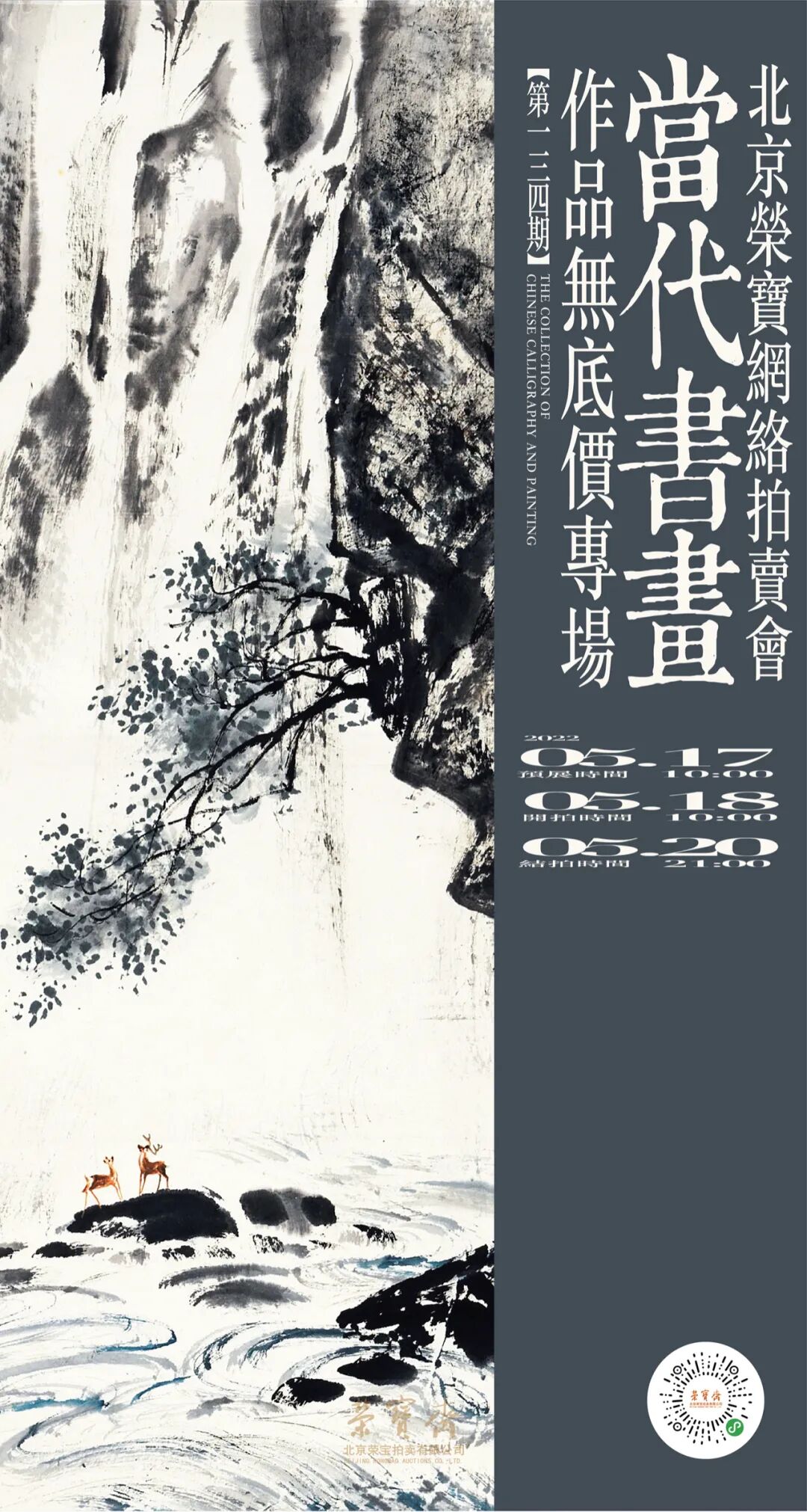 北京荣宝——当代书画作品无底价专场网络拍卖会(第一三四期)将于5月17日10:00—5月18日10:00开启线上预展,并于5月18日10:00开拍,5月20日21:00结拍。