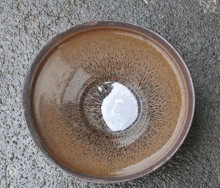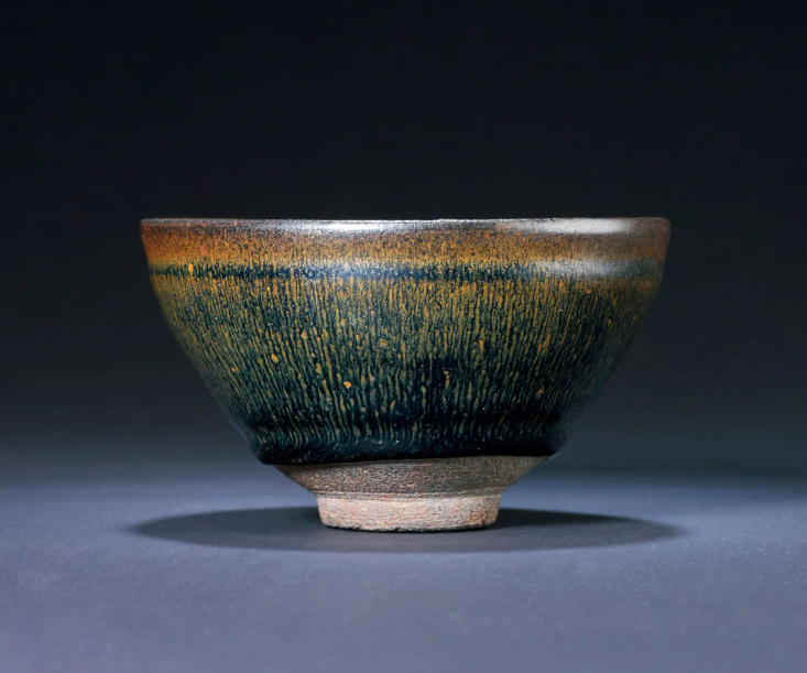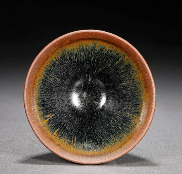 兔毫盏是一种特殊的黑釉瓷器,宋代黑釉瓷器极为流行,这与当时的饮茶风气有关。宋代从皇帝到文人,都喜爱“斗茶”,即品评茶叶质量的好坏。宋代茶叶是制成半发酵的膏饼,饮用之前先把膏饼碾成细末放入茶碗内,再冲入沸水,水面便沸起一层白色的沫。