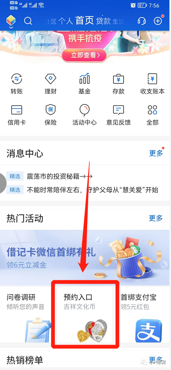 ②首页点击“工银金行家”,进入后点击宣传海报进入即可开始预约抽签。